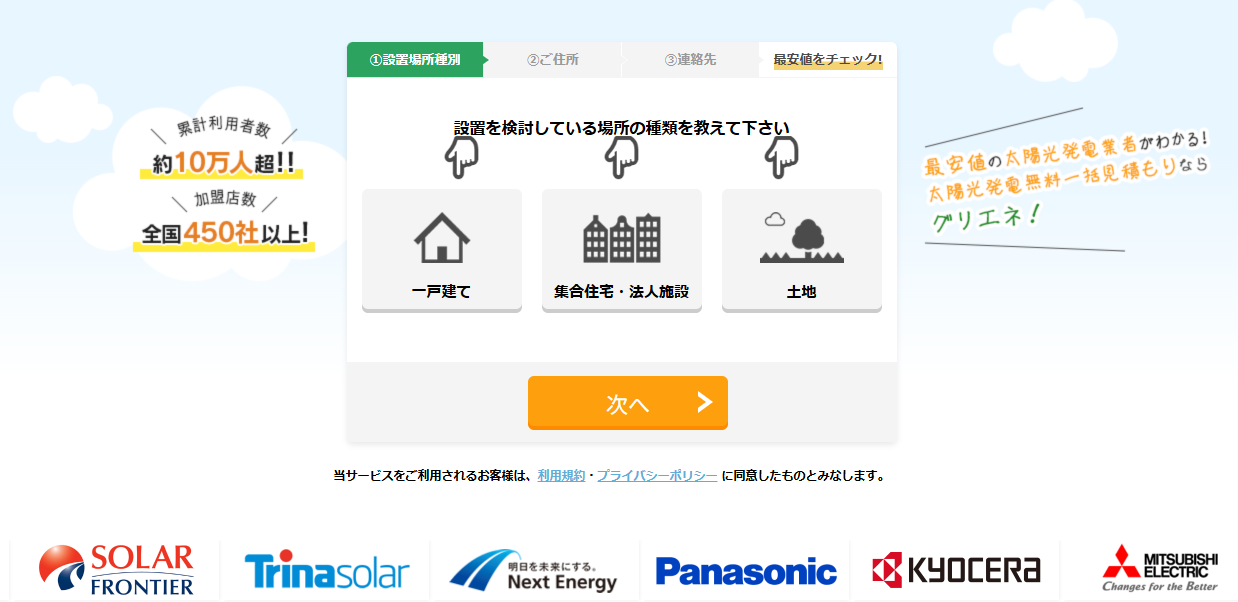 グリエネは、太陽光発電システム・蓄電池・オール電化の無料一括見積もり比較サービスです。東証プライム市場上場企業の株式会社じげんが運営しているので、安心してご利用いただけます。