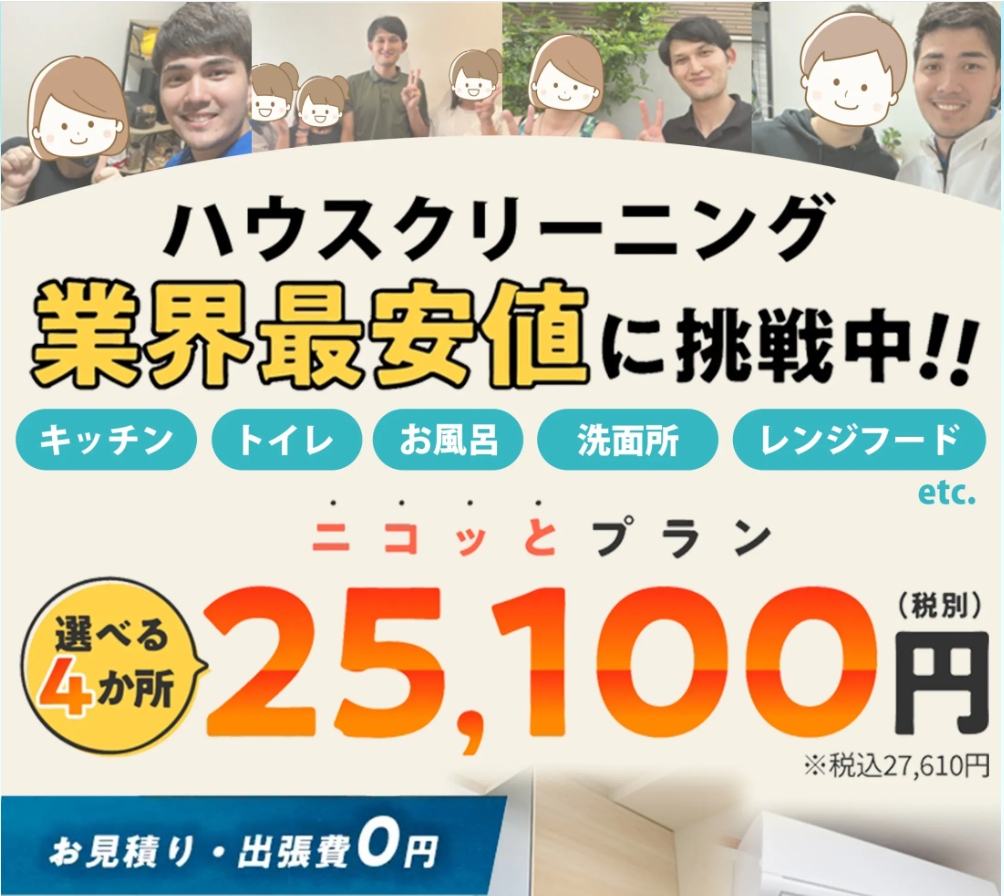 業界最安値!選べる4箇所 25,100円(税別)のハウスクリーニング